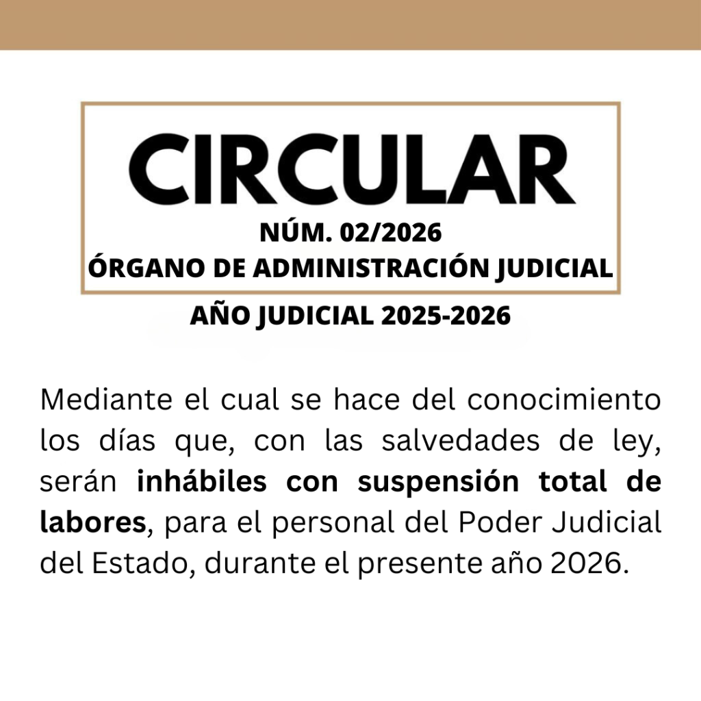 Categorías boletin circulares ACUERDO GENERAL DEL ÓRGANO DE ADMINISTRACIÓN JUDICIAL Autor de la publicación Por desarrollo_tecnologico Fecha de la publicación 18 noviembre, 2025 No hay comentarios en ACUERDO GENERAL DEL ÓRGANO DE ADMINISTRACIÓN JUDICIAL ACUERDO GRAL OAJ 07-NOV-2025